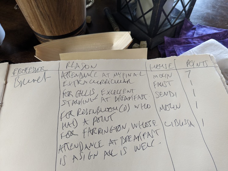 College of Wizardry 25 was another ride like those. 75 players, all wanting to come to a college of magic, all wanting a magical experience, all magic. A phalanx of utterly amazing off-game orgas behind me, a staff room of beautifully committed professors with me as the pointy bit.